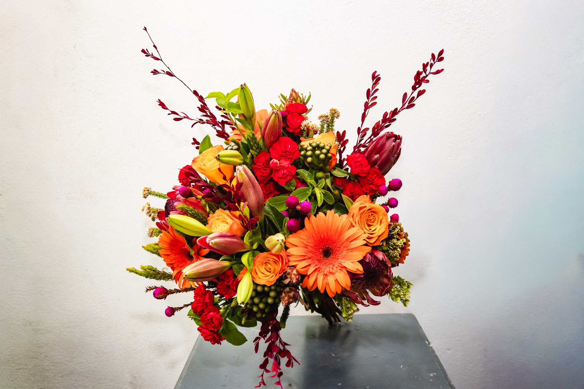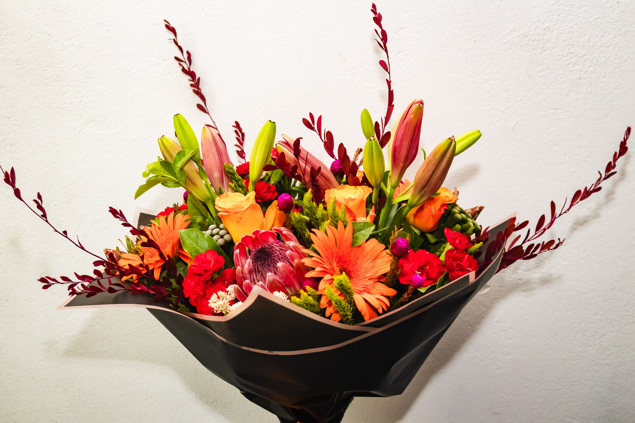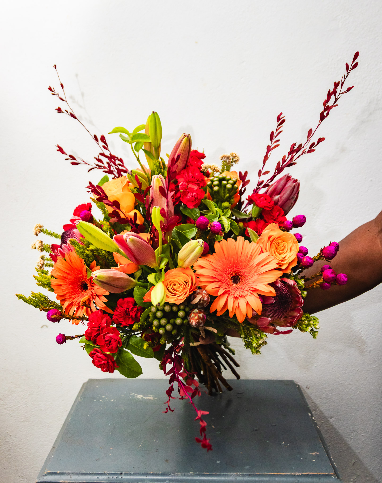 A vibrant mix of lilies, roses, proteas, gerberas, and seasonal blooms, thoughtfully arranged to celebrate colour, texture, and joy. Bold, fresh, and full of life perfect for making a statement.