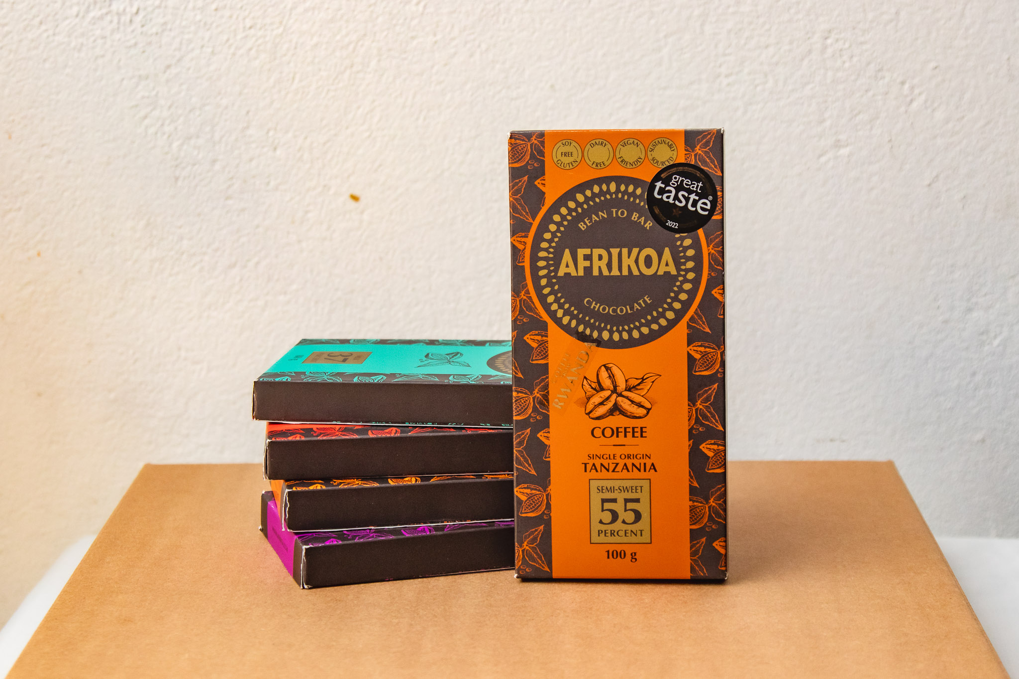 A rich and aromatic 55% semi-sweet chocolate bar enhanced with roasted coffee beans. Deep, smooth, and perfectly balanced for lovers of bold flavours.