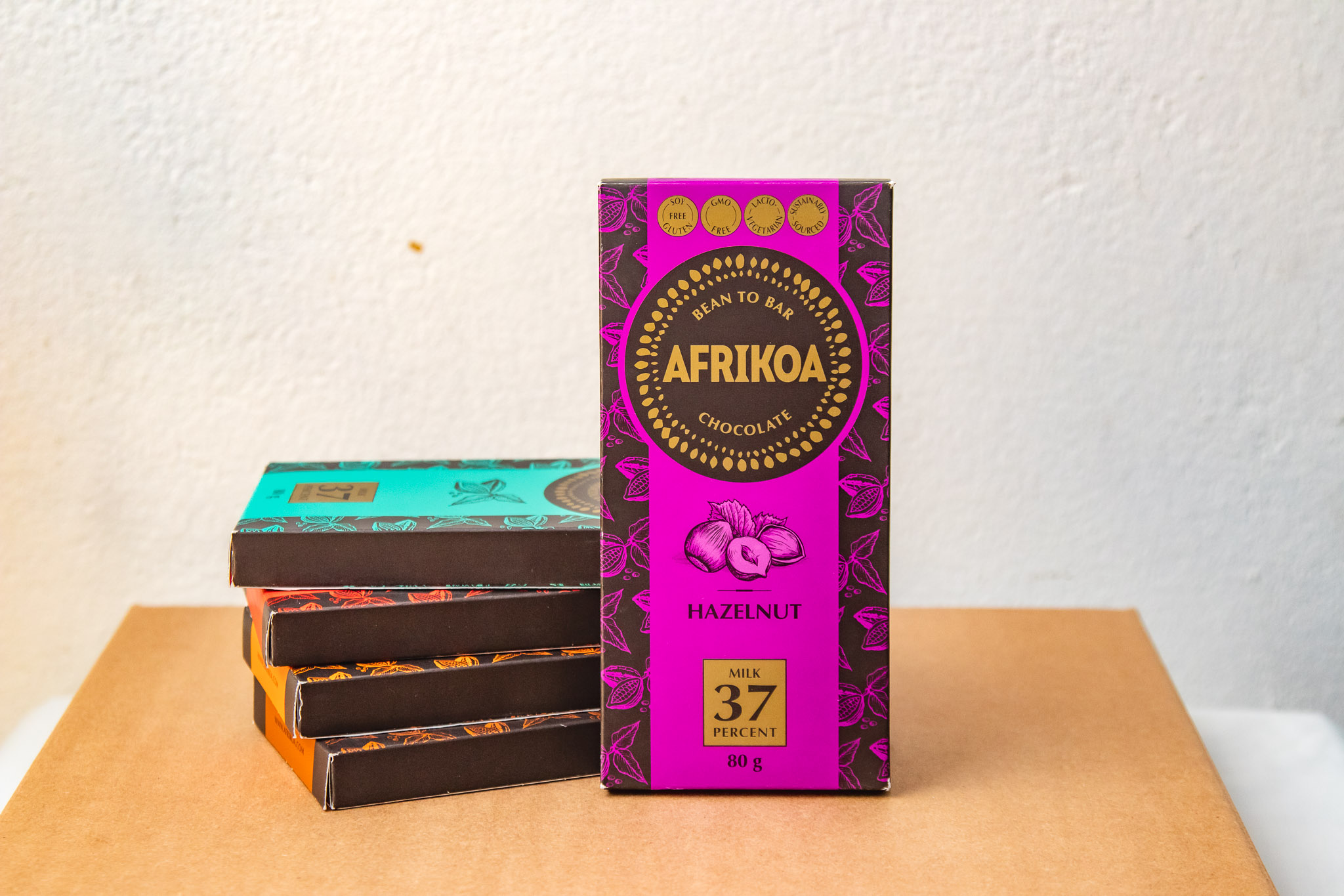 A premium bean-to-bar chocolate crafted with ethically sourced African cocoa. This 37% milk chocolate bar is infused with smooth, nutty hazelnut flavour, creating a creamy and indulgent taste experience.